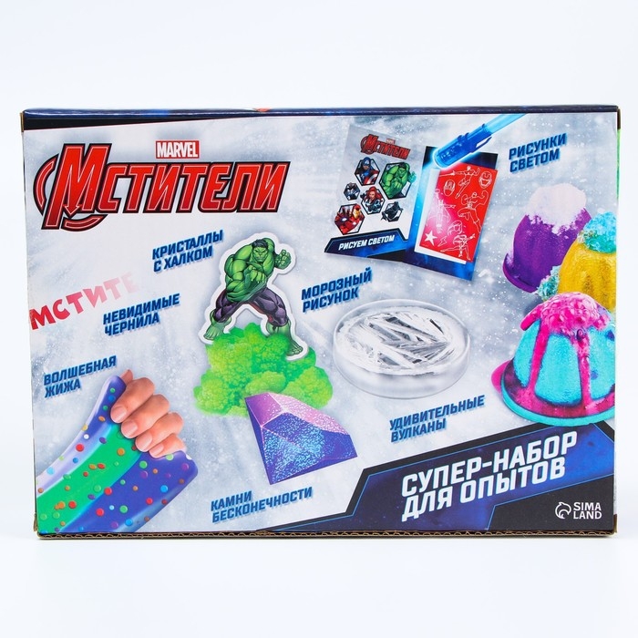 С большим набором опытов «Мстители» ребёнок сможет провести 7 крутых опытов, в результате которых у него получатся необычные игрушки.