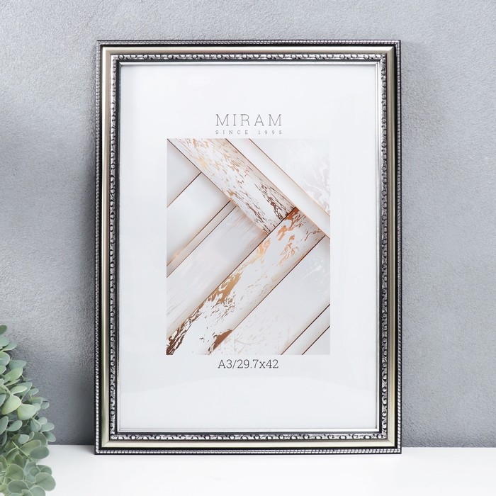 Фоторамка пластик МИРАМ 29.7х42 см, (A3) серебро (пластиковый экран)