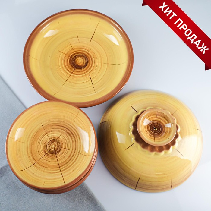 Набор для блинов 7 предметов: 1 шт. блинница, 6 шт. тарелок, с росписью, можжевельник