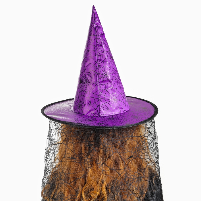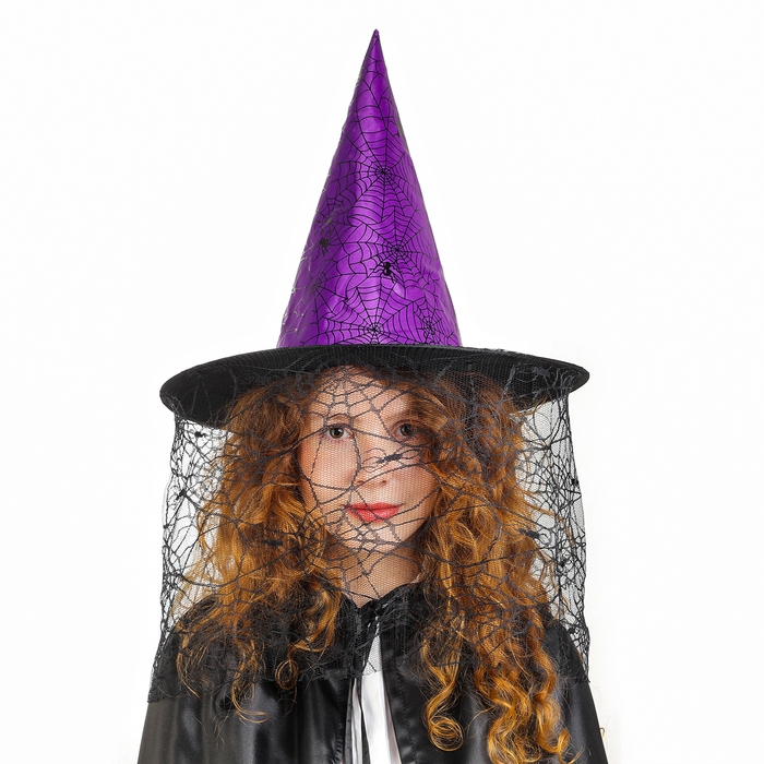Карнавальная шляпа «Ведьмочка», с фатой, р-р. 56-58, цвет сиреневый