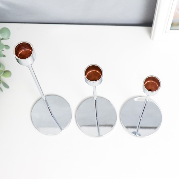 Подсвечник металл "Классика" набор 3 шт серебро высота 22; 28; 32 см 32х8х8 см