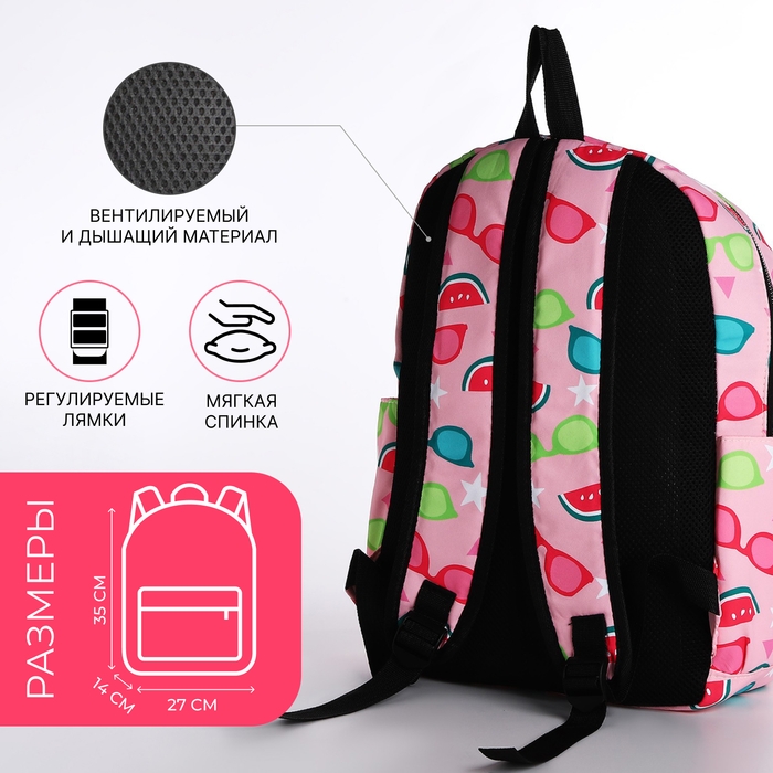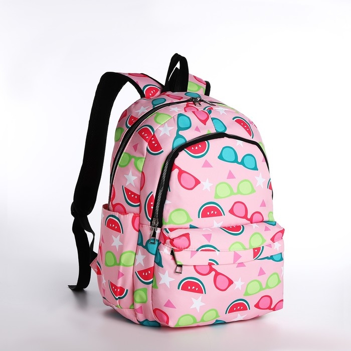 Рюкзак молодёжный из текстиля 2 отдела на молнии, 3 кармана, цвет розовый