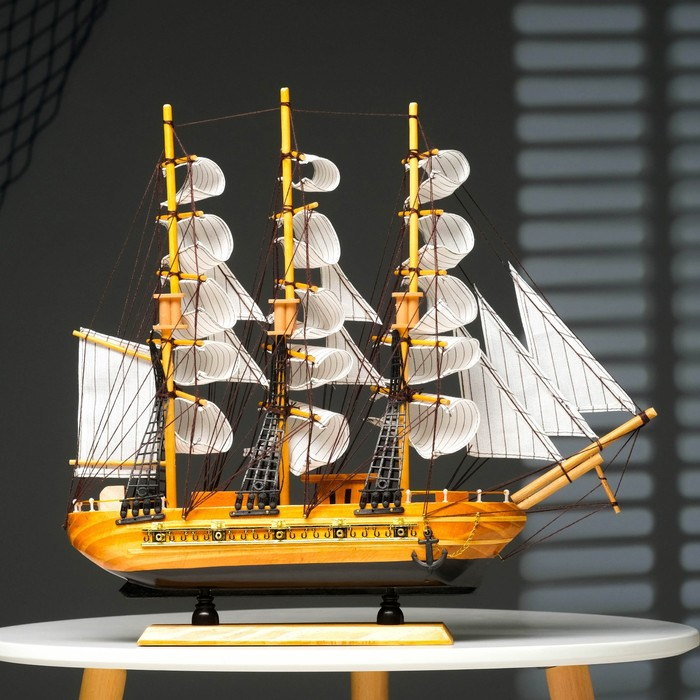 Корабль сувенирный средний «Астрильд», борта светлое дерево, паруса бежевые, 48,5х44х8 см