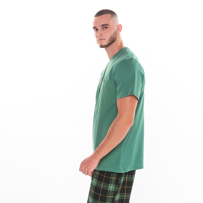 Комплект (футболка/брюки) мужской, цвет зеленый/клетка, размер 46