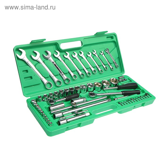 Набор инструментов в кейсе ТУНДРА, автомобильный, 1/2" и 1/4", 63 предмета