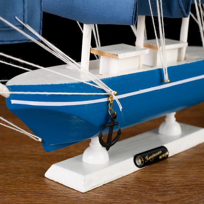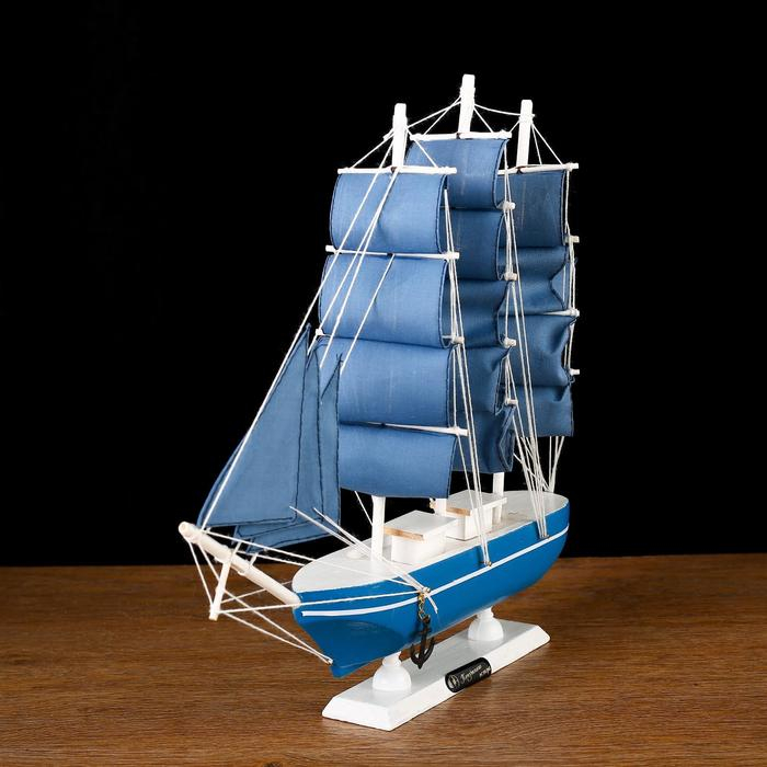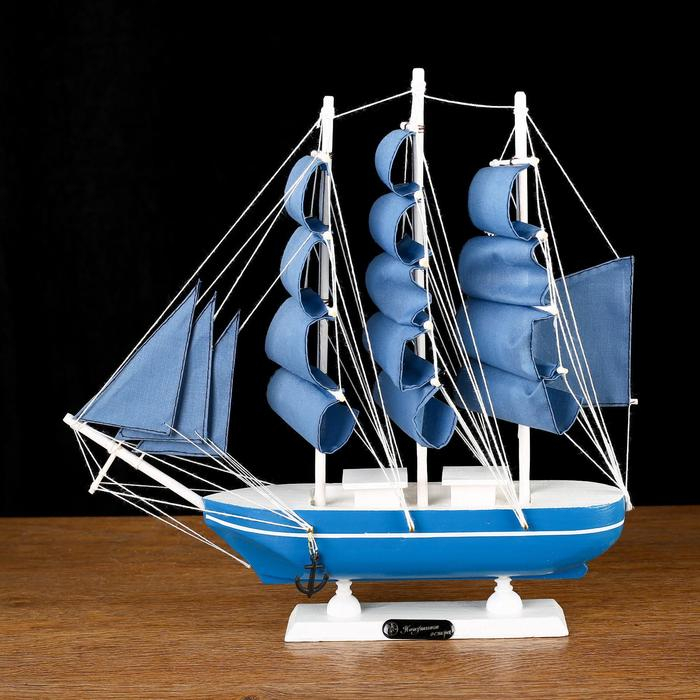Корабль сувенирный средний «Алида», борта голубые с полосой, паруса голубые, 32х31,5х5,5 см