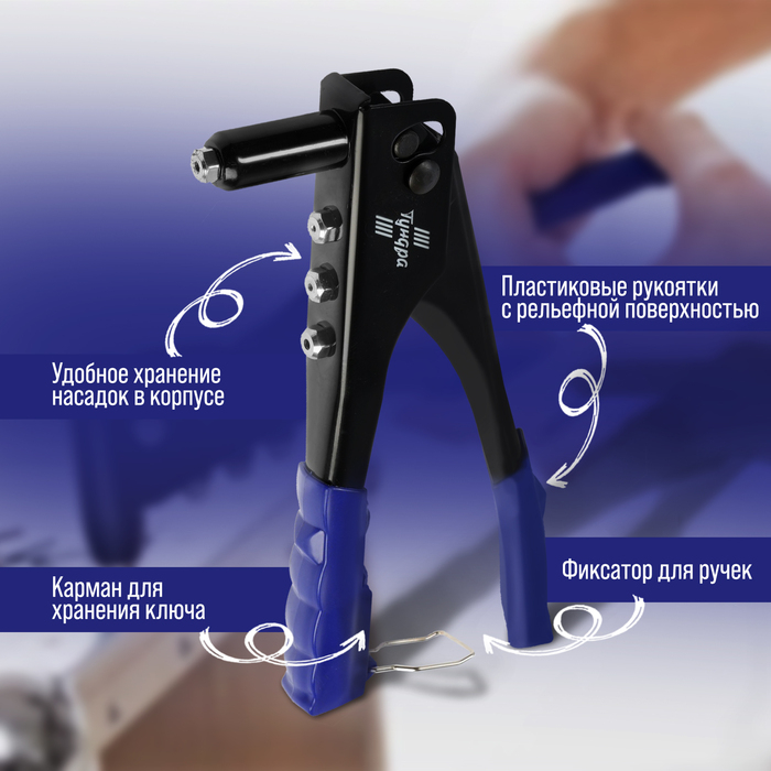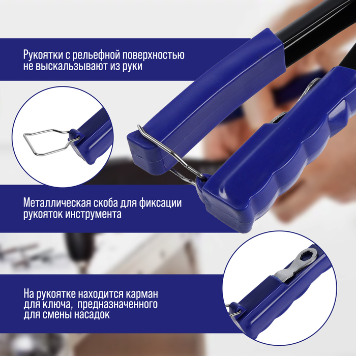 Заклепочник ТУНДРА, 240 мм, заклепки 2.4 - 3.2 - 4 - 4.8 мм