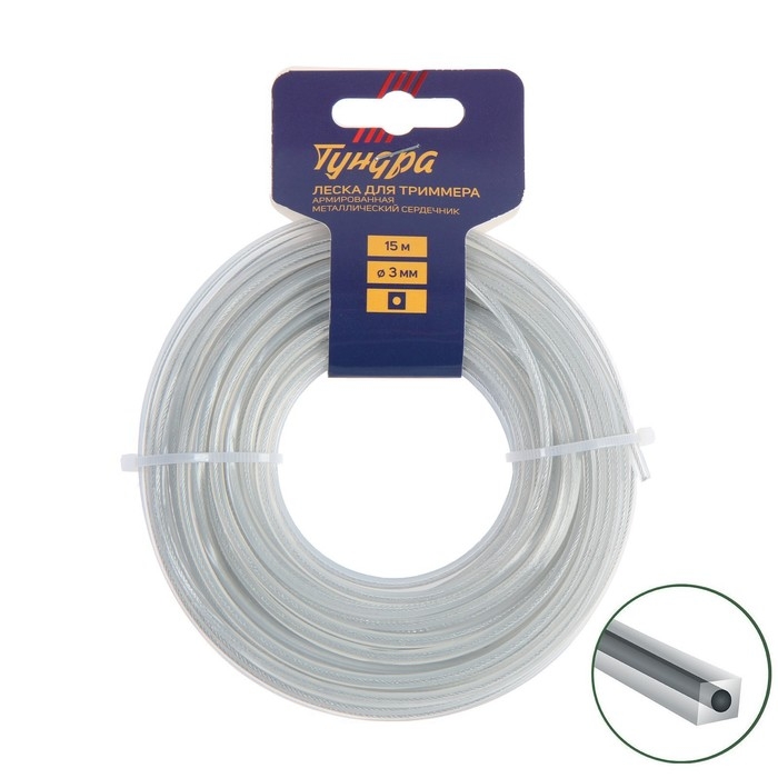 Леска для триммера ТУНДРА, сечение квадрат, метал. сердечник, армированная, d=3 мм, 15 м