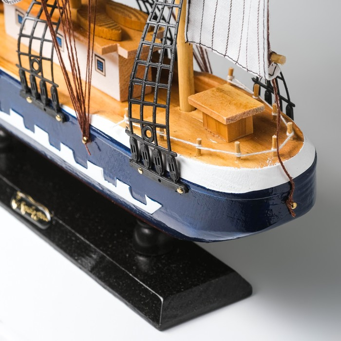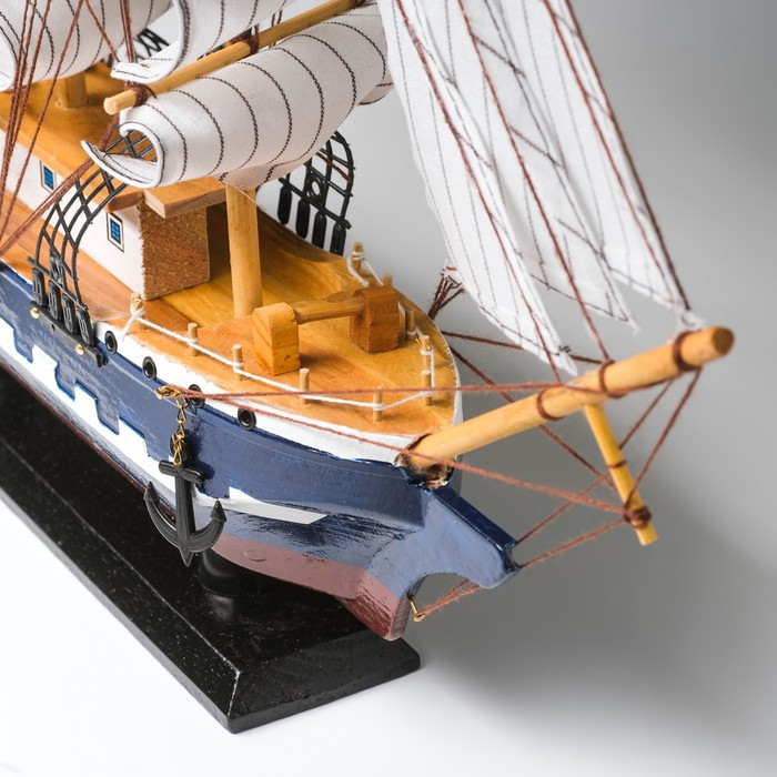 Корабль сувенирный большой «Рион», борта сине/чёрные, паруса бежевые с полосами, 50х44х10 см