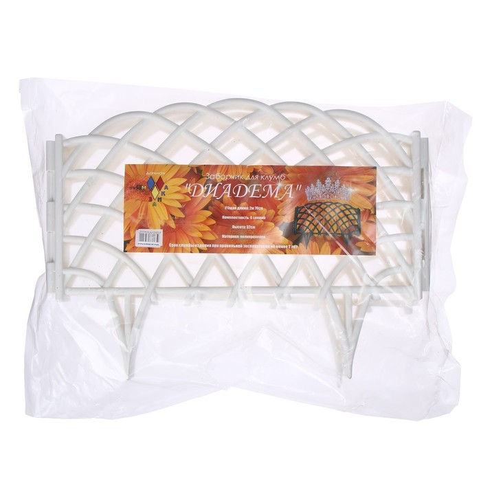 Ограждение декоративное, 34 × 270 см, 6 секций, пластик, белое, «Диадема»