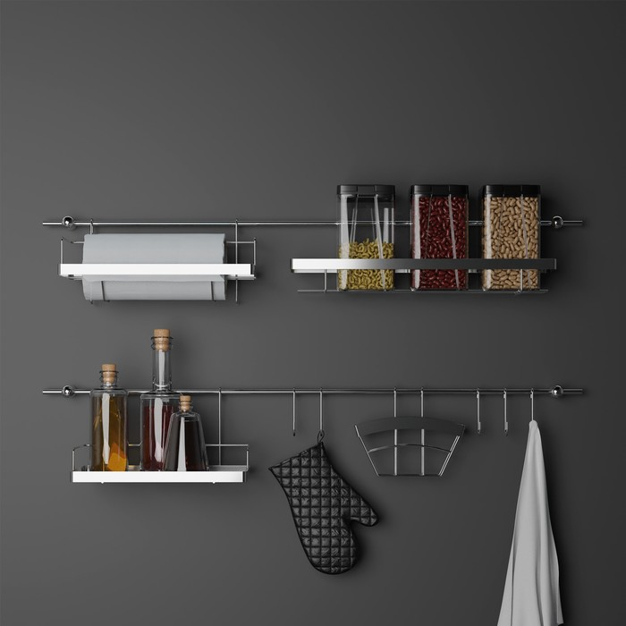 Рейлинговая система для кухни Доляна: базовый набор, 16 предметов