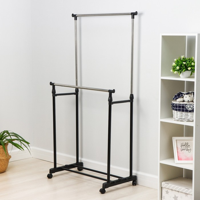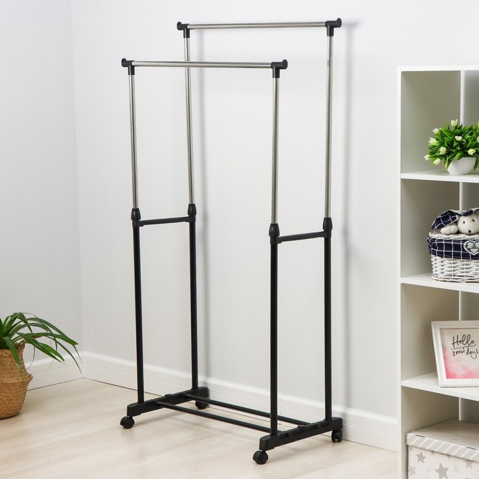 Стойка - вешалка напольная для одежды Доляна, телескопическая, 2 перекладины 80×43×90(160) см