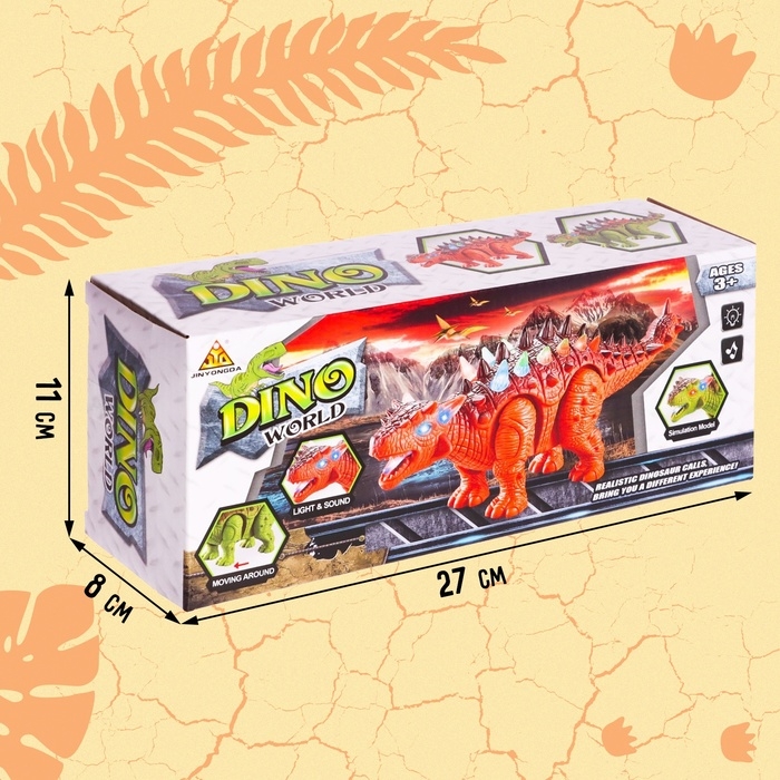 - Древний хищник умеет ходить, у него ярко светятся спина и рот, а ещё он издаёт пронзительный рёв, совсем как настоящий динозавр — ребёнку непременно понравится.