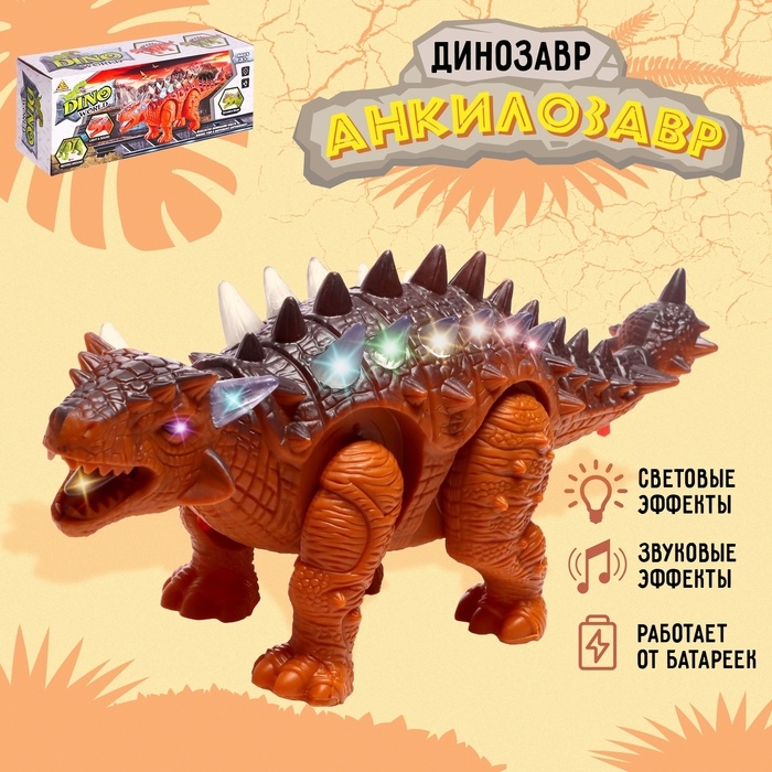 Динозавр «Анкилозавр» работает от батареек, свет и звук, цвет коричневый