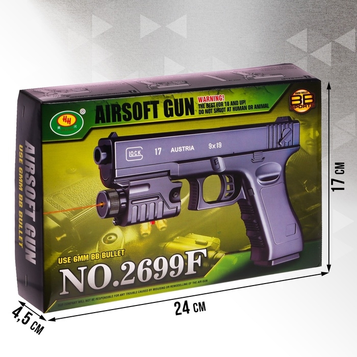 Игрушечное оружие повторяет внешний вид настоящего. Но не несёт никакого вреда ребёнку. С таким пистолетом игры в войнушку станут ещё реалистичней.