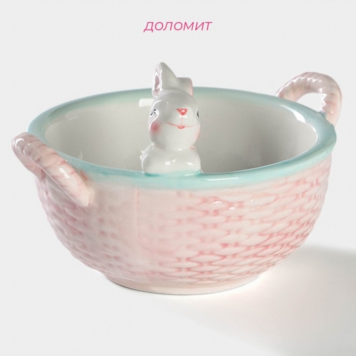 Конфетница «Зайка», 800 мл, 19,5×16,5×12,5 см, цвет розовый