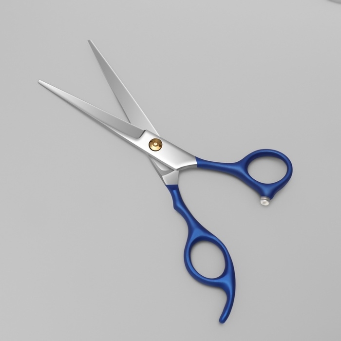 Ножницы парикмахерские с упором «Premium», лезвие — 6,5 см, цвет серебристый/синий