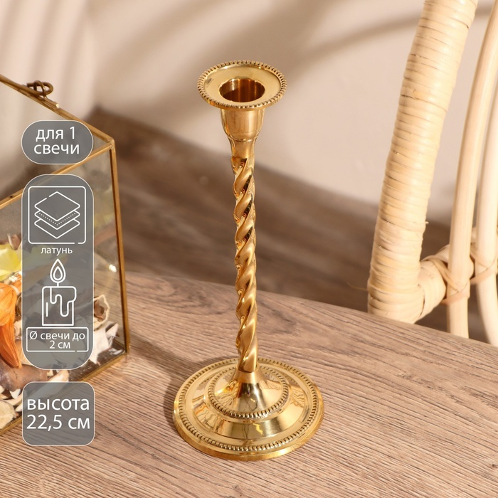 Подсвечник на 1 свечу "Волли" латунь 22,5х9х9 см