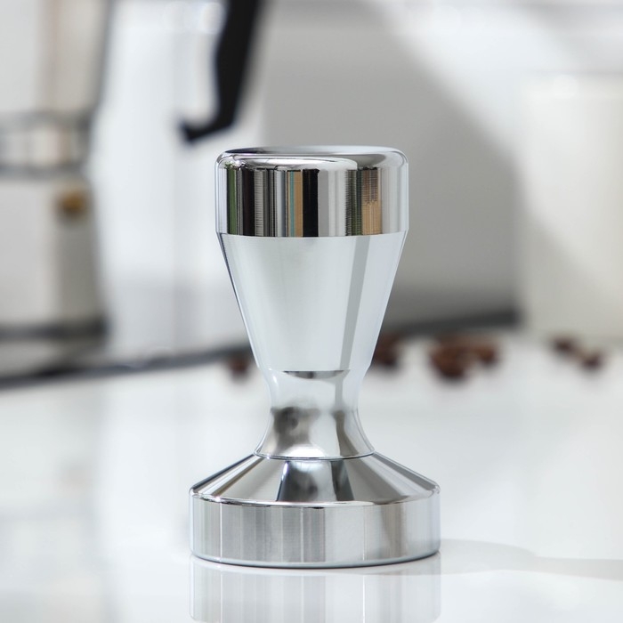 Темпер с плоским основанием имеет диаметр рабочего основания 48 мм. Изготовлен из тяжелой хромированной стали весом 570г. Имеет эргономичную ручку, что значительно упрощает работу бариста. Чтобы подобрать темпер, нужно измерить внутренний размер фильтра рожка для кофе. Диаметр основания темпера должен быть на 0,5-1 мм меньше внутреннего диаметра фильтра.