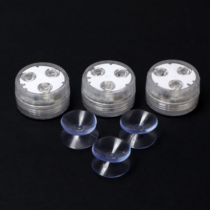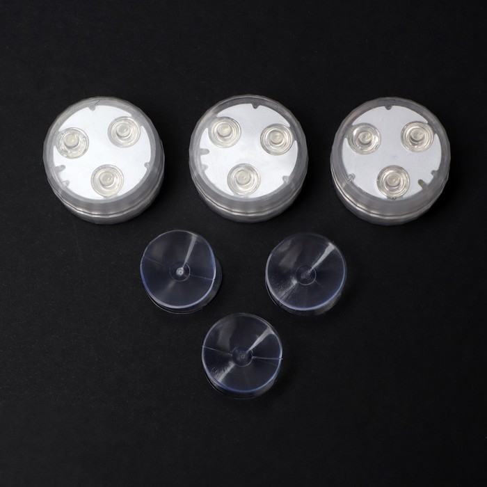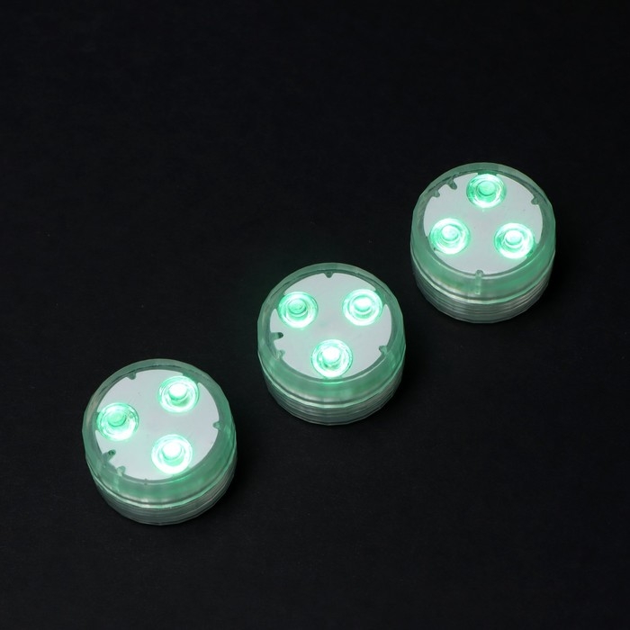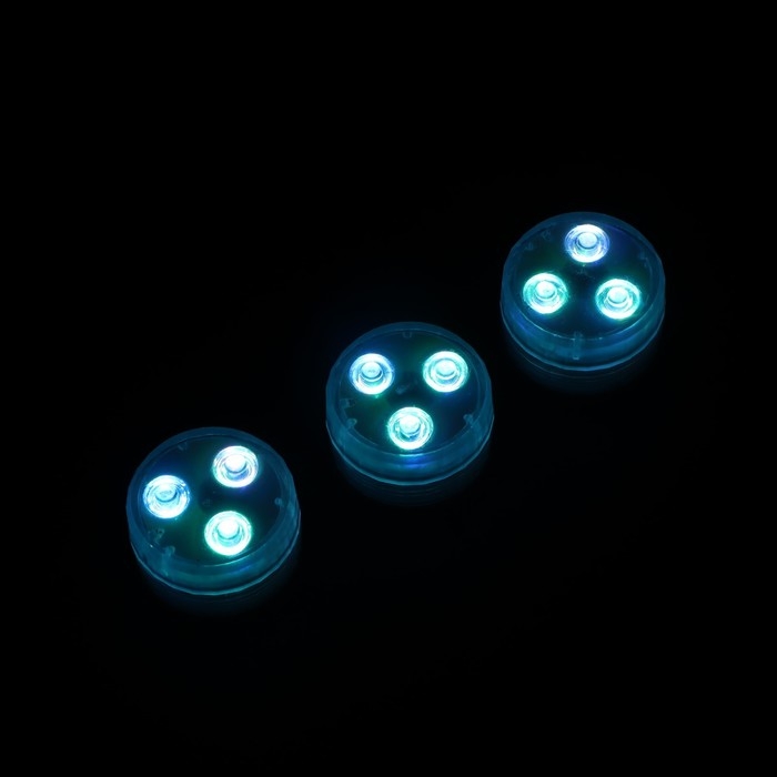 Светильник водонепроницаемый мини, 3 x 1.9 см, 3 шт, от CR2032 (в компл.), пульт, RGB, IP68