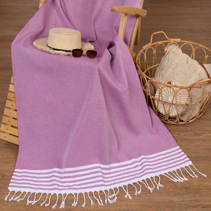 Пештемаль для пляжа, бани, сауны Waffle 100х180 см, розовый