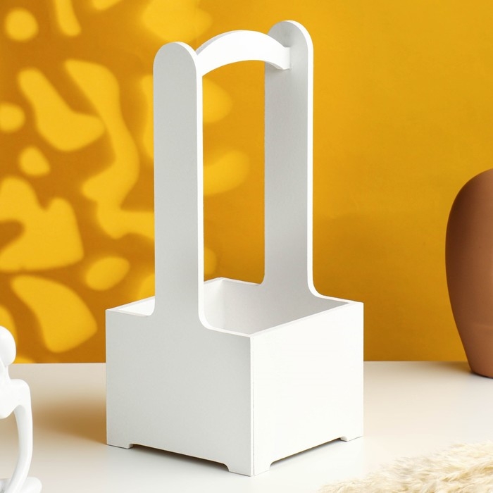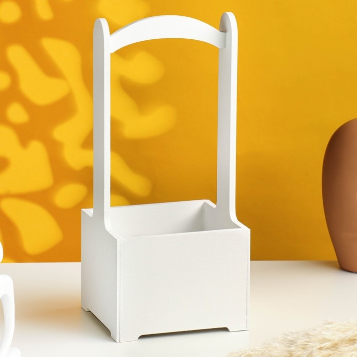 Кашпо - ящик деревянный 13,5х13,5х30 см, белый