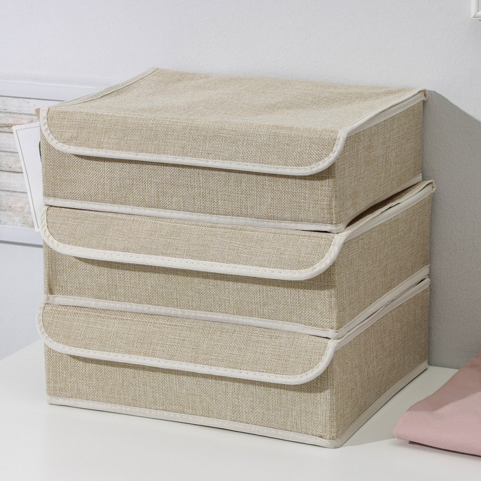 Органайзеры для хранения белья «Пастель», 3 шт, с крышкой, 31,5×25×10 см, цвет бежевый