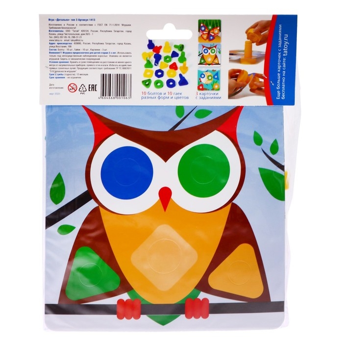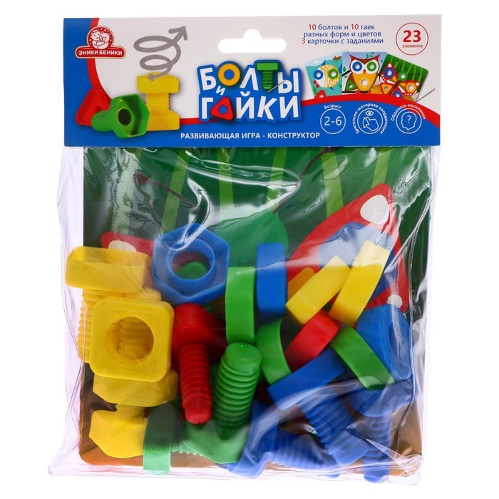 Настольная игра «Болты и гайки», 10 болтов и 10 гаек, 3 карточки с заданиями
