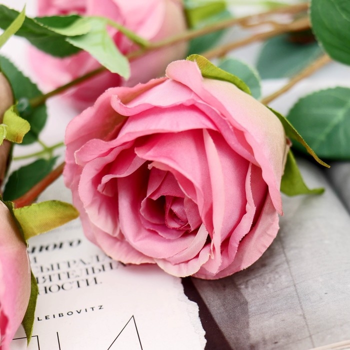 Цветы искусственные "Роза Блю Парфюм" d-5 см 60 см, тёмно-розовый