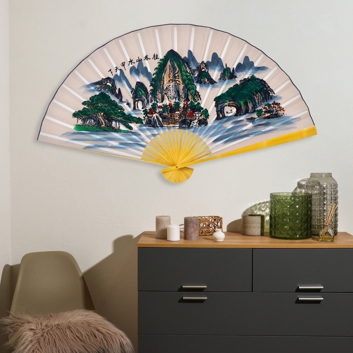Веер бамбук, текстиль h=90 см "Зелёные горы" белый