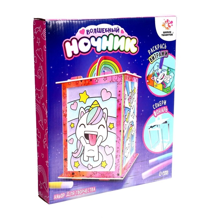 Набор для творчества «Волшебный ночник», единорог, витражный, 3Д конструктор, 5+