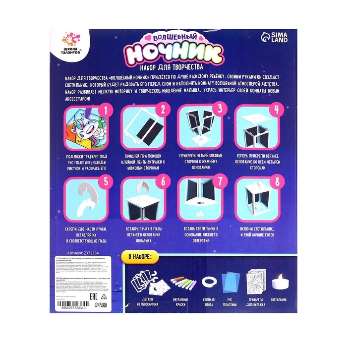 Набор для творчества «Волшебный ночник» придётся по душе каждому ребёнку. Малыш создаст светильник, который будет радовать его перед сном и наполнять комнату волшебной атмосферой.