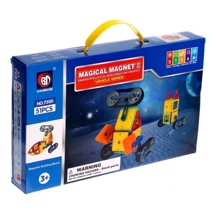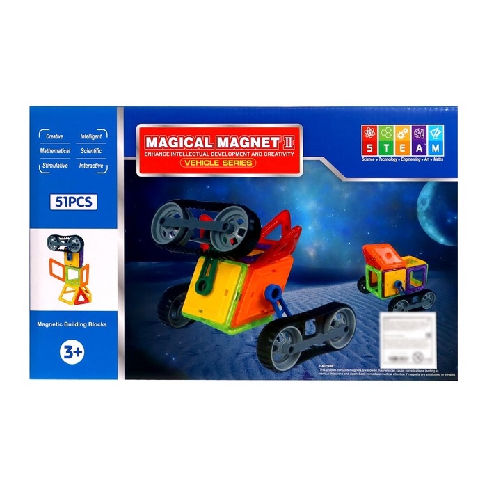 «Магический магнит» — это конструктор, детали которого соединяются как по волшебству. Под действием магнитного поля элементы притягиваются друг к другу, открывая неограниченный простор для экспериментов. Из ярких геометрических форм ребёнок соберёт машины, карусели, башни, вертолёты и даже ракеты. Иллюстрированная инструкция подскажет идеи новых моделей и продемонстрирует принципы конструирования, с ней создание фигурок станет проще и увлекательнее.