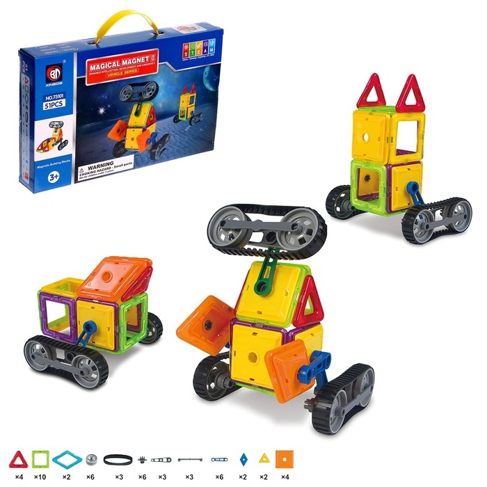 Элементы изготовлены из качественного пластика с использованием безопасных красителей. Детали совместимы с аналогичными наборами серии Magical Magnet, что позволяет делать разнообразные комбинации.