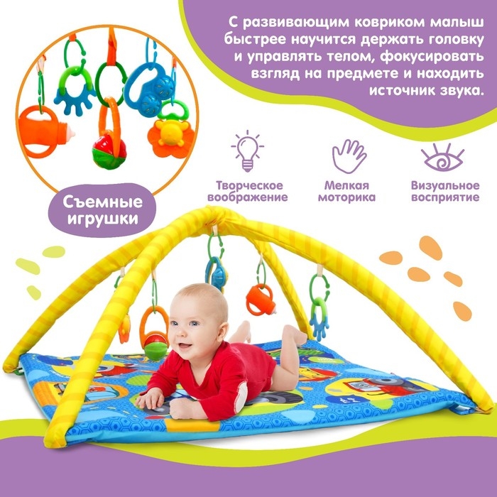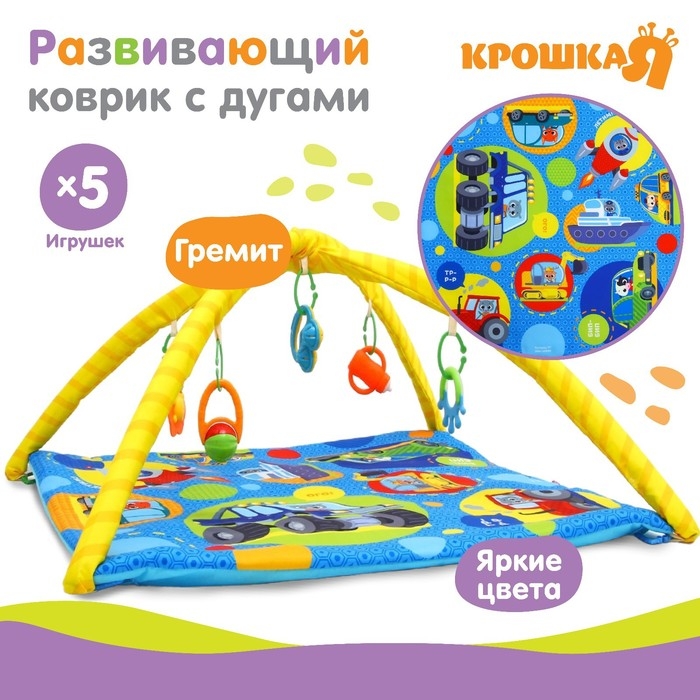 Развивающий коврик с дугами «Транспорт», 85х85 см, Крошка Я