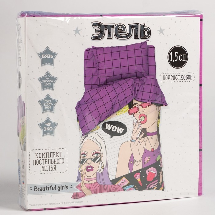 Постельное бельё Этель 1,5 сп "Beautiful girl" 143х215 см, 150х214 см, 50х70 см -1 шт, 100 % хлопок, бязь