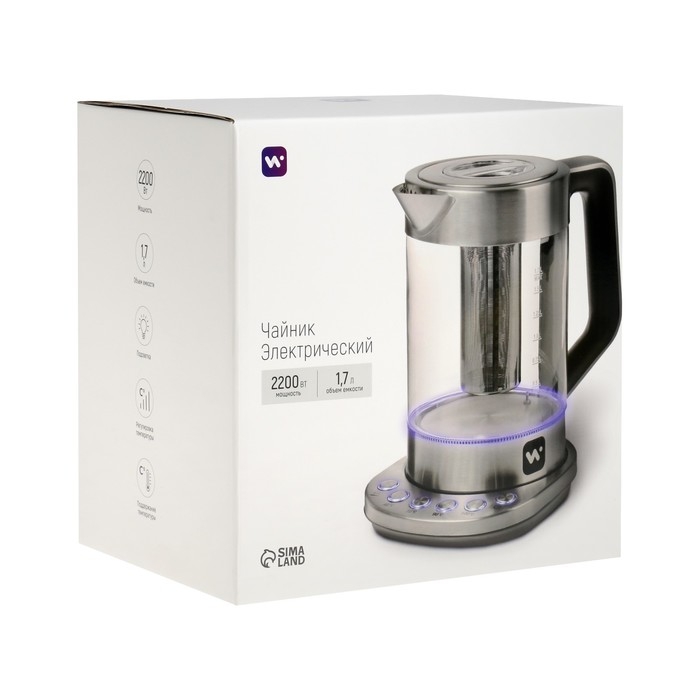 Чайник электрический Windigo LSK-1807, стекло, 1.7 л, 2200 Вт, регулировка t°