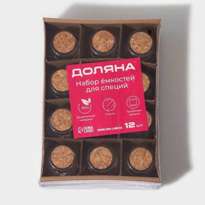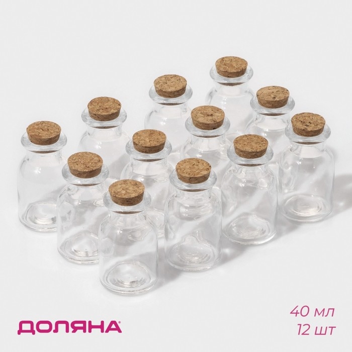 Набор баночек стеклянных для специй с пробковой крышкой Доляна «Парфе», 40 мл, 4×6,6 см, 12 шт