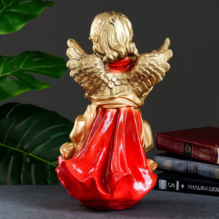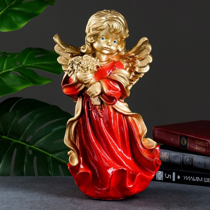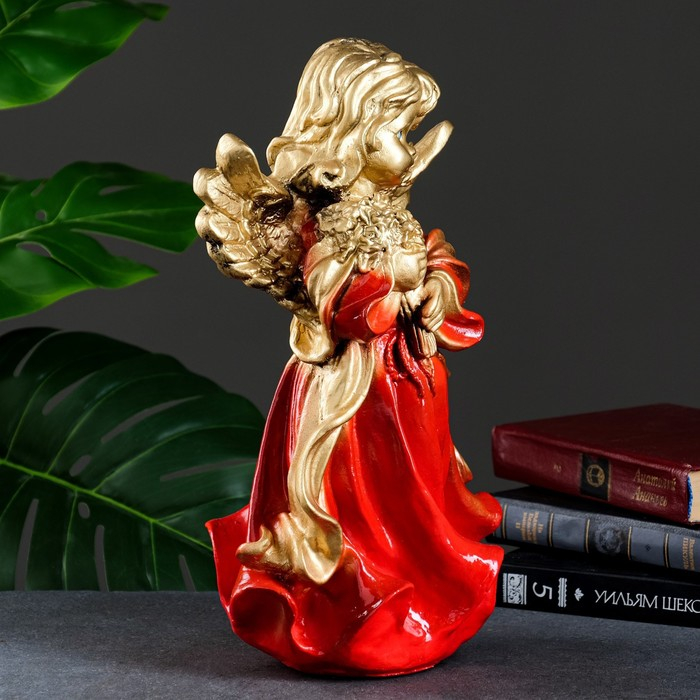 Фигура "Ангел в платье ассорти с букетом" золото 20х20х35см