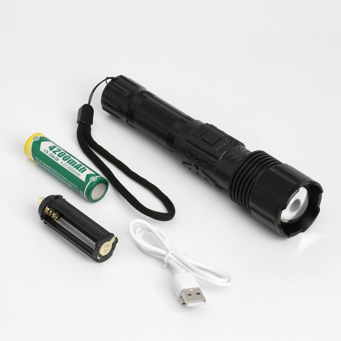 Фонарь ручной аккумуляторный 1500 лм, 4.2 В, 1200 мАч, 200 м, P50, COB, 5 режимов