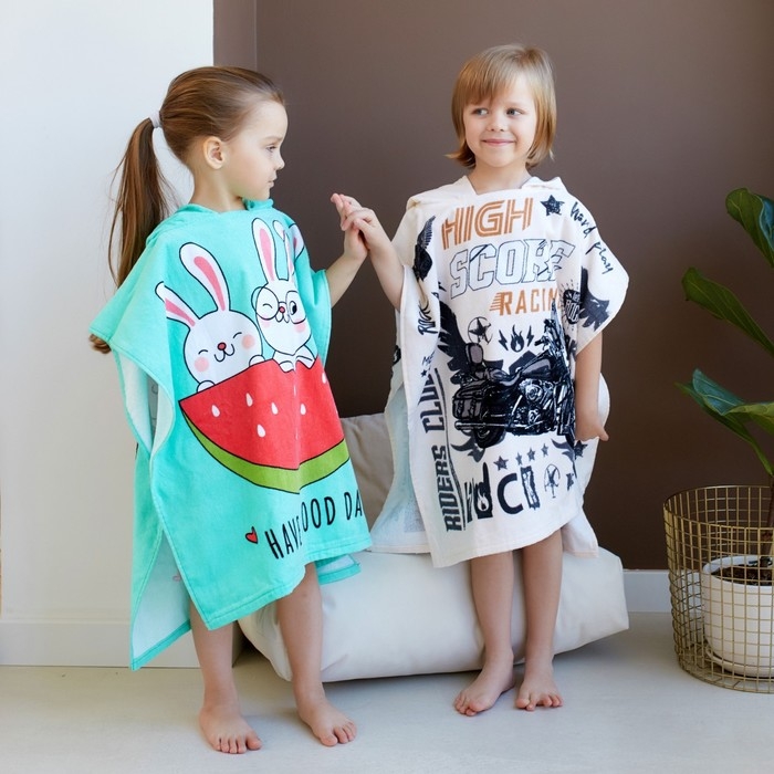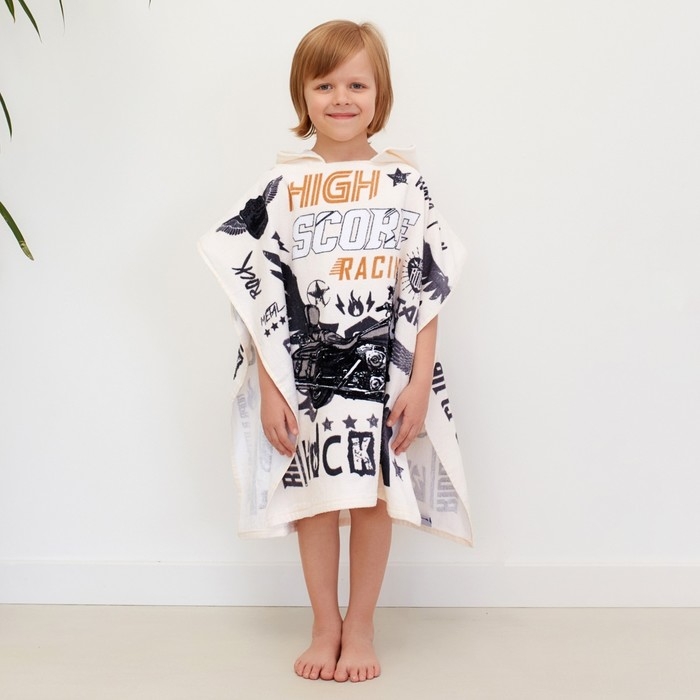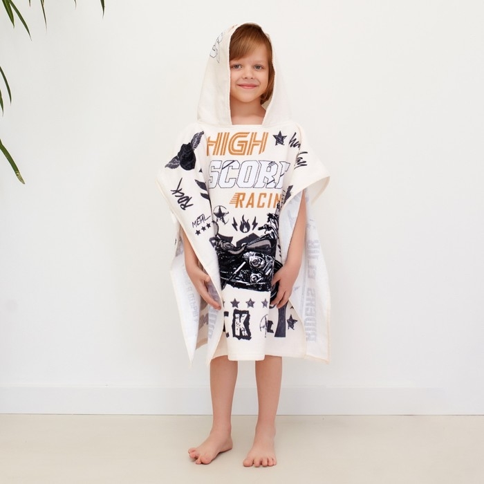Полотенце-пончо детское махровое Крошка Я "Racing" 60*120см, 100% хлопок, 300гр/м2