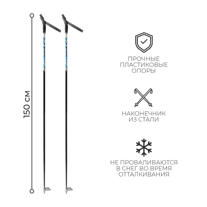 Палки лыжные стеклопластиковые, длина 150 см, цвета МИКС