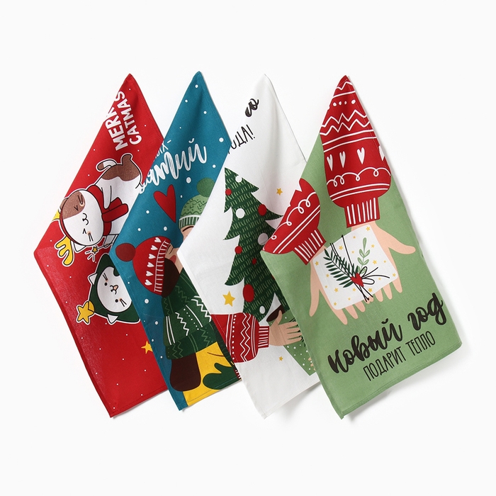 Набор кухонных полотенец Доляна «Время теплых объятий», 35х60 см-4шт., 100% хлопок, 160 г/м2