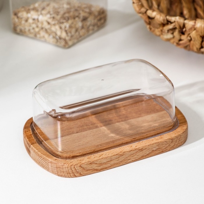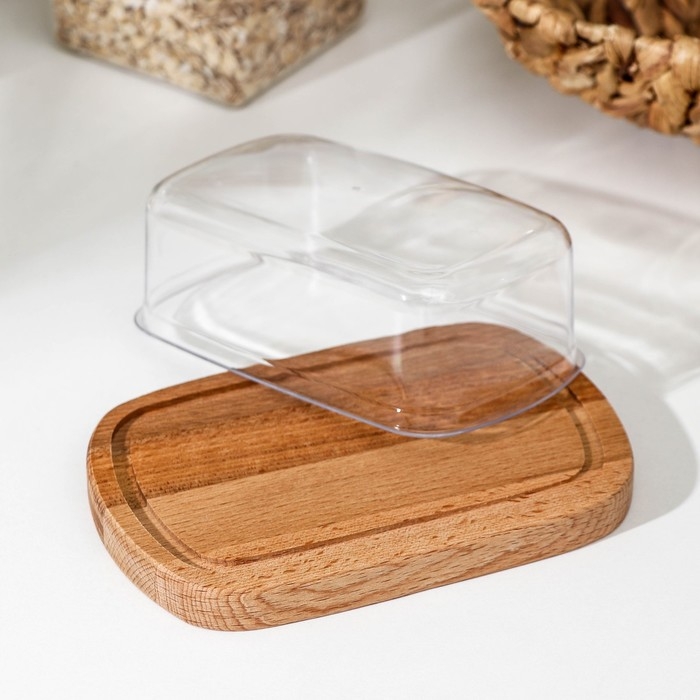 Маслёнка предназначена для хранения сливочного масла в холодильнике и подачи на стол. Основание маслёнки изготовлено из бука. Деревянная поверхность обработана маслом безопасным для пищи, что снижает риск проникновения запахов внутри древесины и продлевает срок службы. Прозрачная крышка позволяет видеть содержимое. Чтобы маслёнка сохраняла свои качества, её не рекомендуется мыть в посудомоечной машине, а также нельзя греть в микроволновой печи и замачивать на длительное время в воде. Рекомендуем мыть изделие тёплой водой с мыльным раствором. После мытья тщательно просушить. Каждые 2-3 месяца, доску необходимо покрывать пищевым маслом.