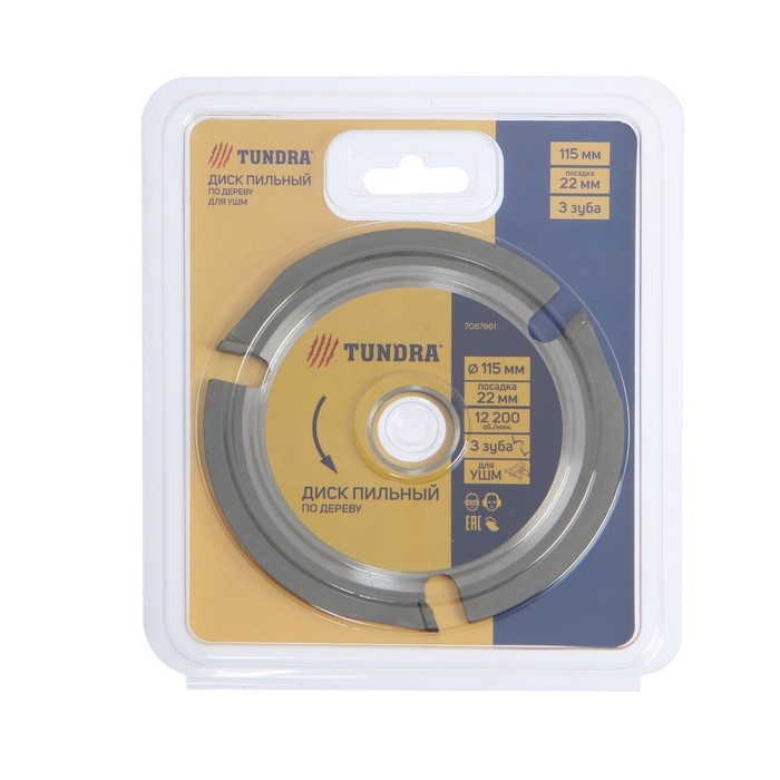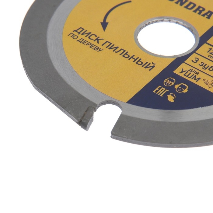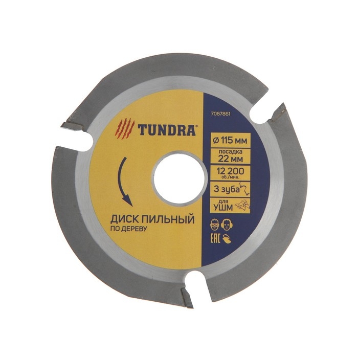 Диск пильный для УШМ ТУНДРА, для быстрой и плавной обработки дерева, 115 х 22 мм, 3 зуба