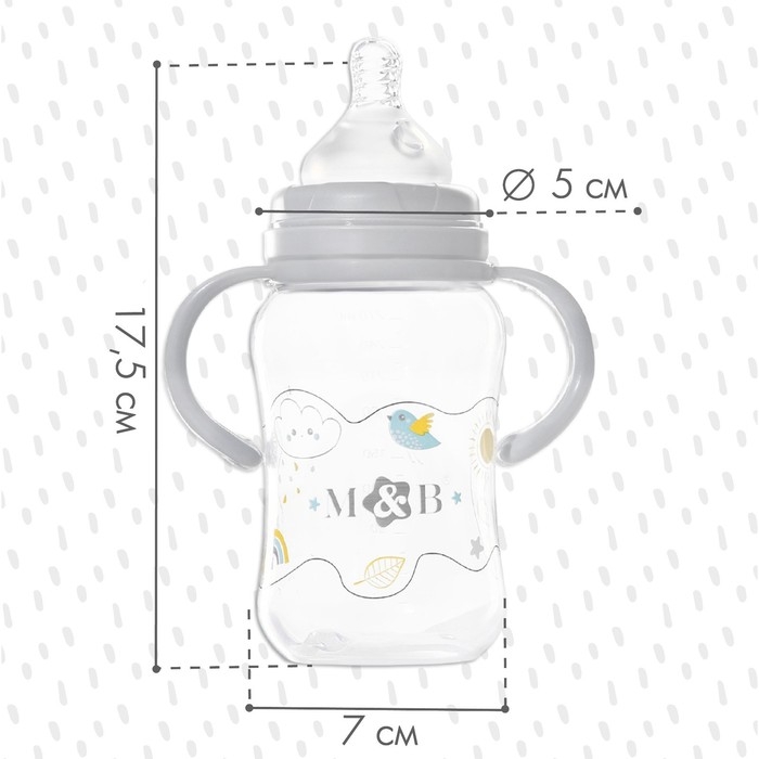 Бутылочка для кормления, широкое горло, от 3 мес., с ручками 270 мл.