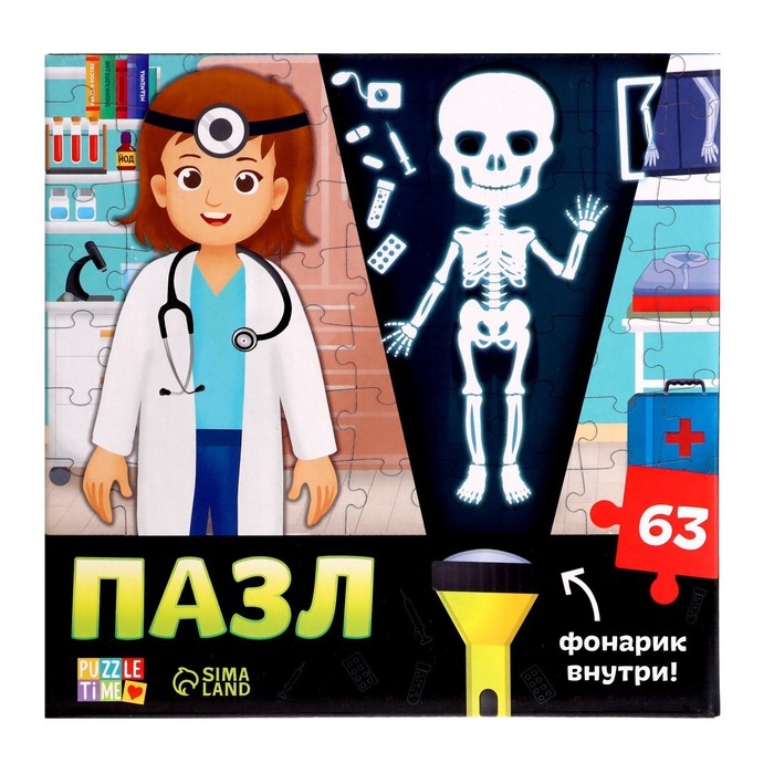 Пазл с фонариком «Кабинет врача», 63 детали