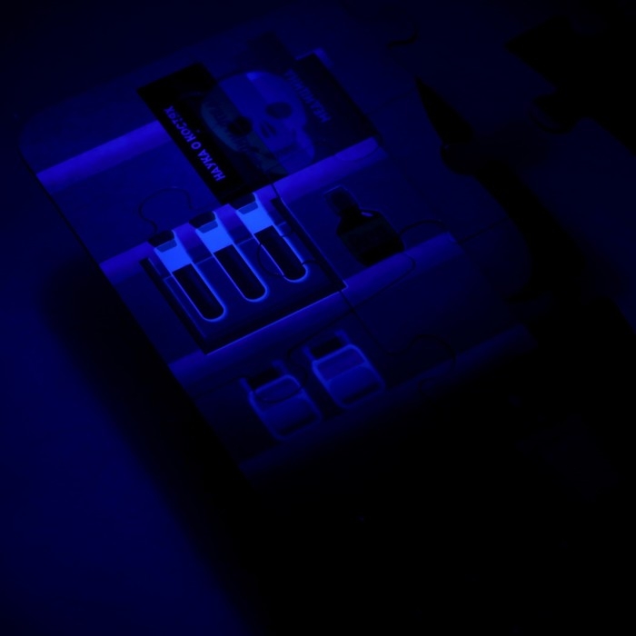 Соберите картинку и отыщите спрятанные на ней секреты. В этом вам поможет ультрафиолетовый фонарик.