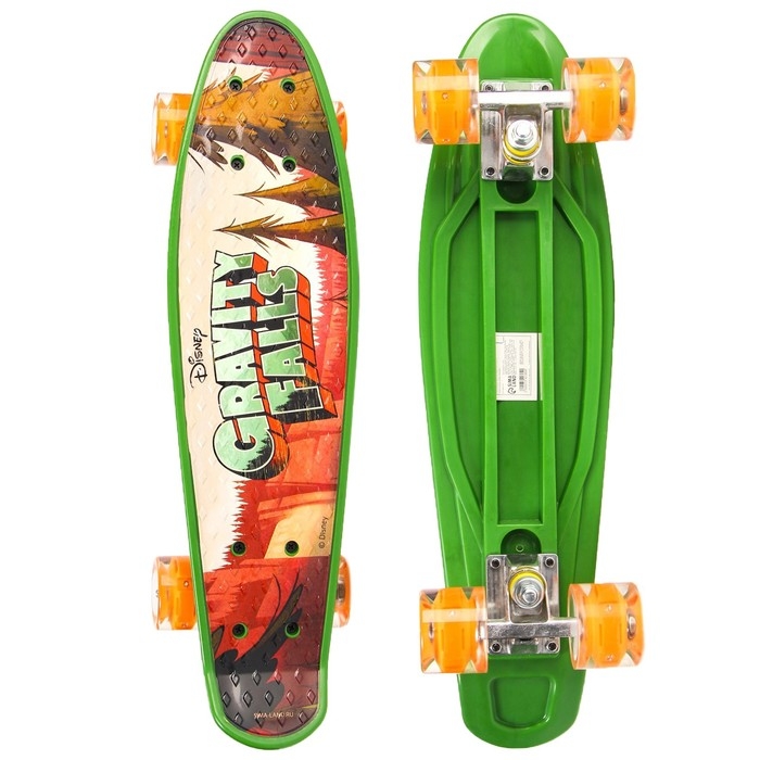 Пенниборд Gravity Falls 56 х 16 см, колёса световые PU 60х45 мм, ABEC 7, цвет зелёный