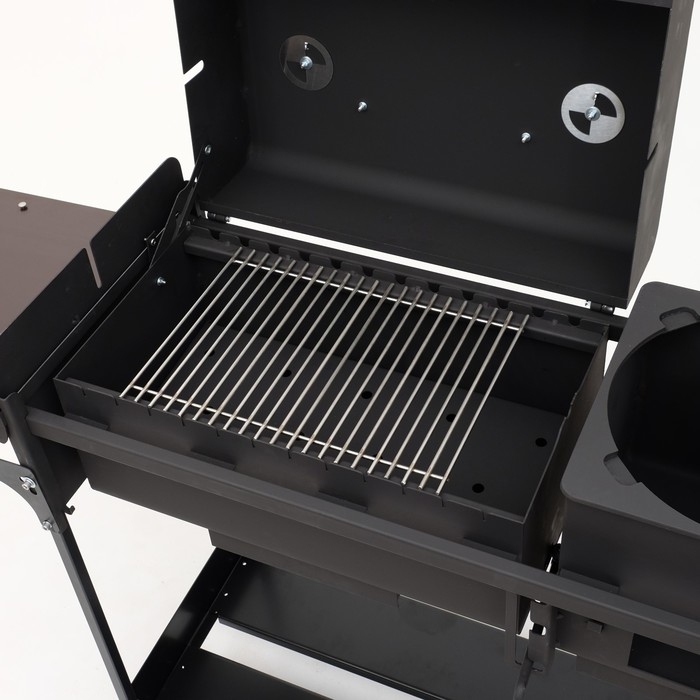 Регулируемый по высоте колосник (угольный поддон) мангала позволяет контролировать степень термообработки продуктов.